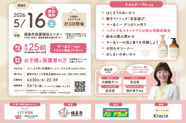 ■開催日:2026年5月16日(土) ■会場:福島市保健福祉センター ■参加費:無料(各回25組・事前申込制)