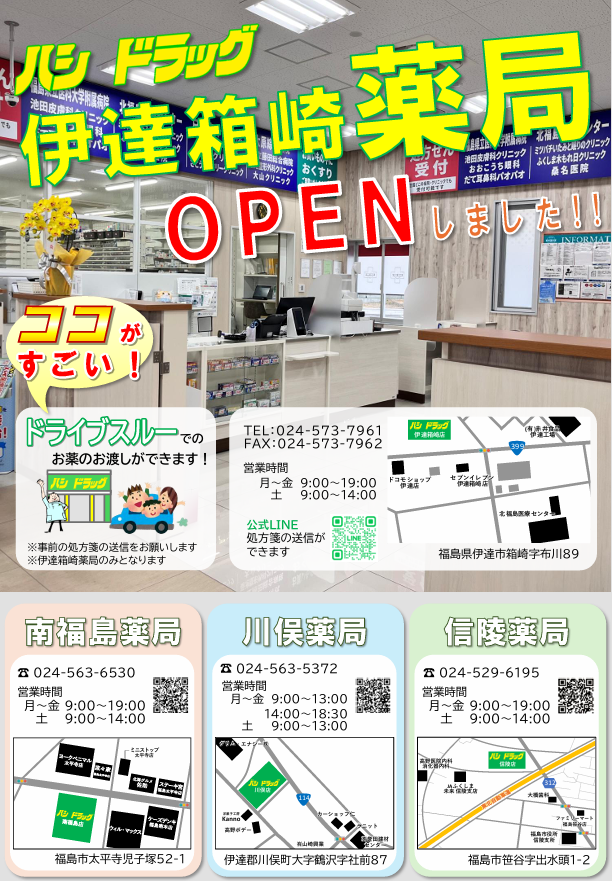 ハシドラッグ伊達箱崎薬局OPEN!