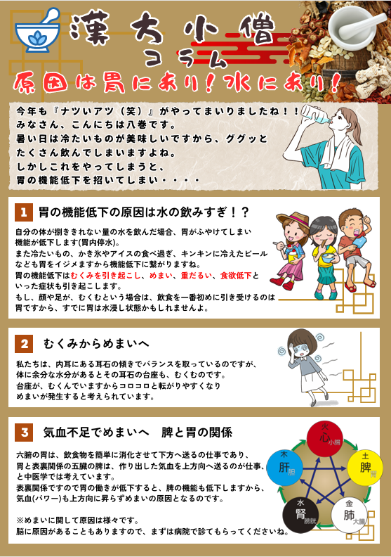 【漢方小僧コラム】原因は胃にあり!水にあり!